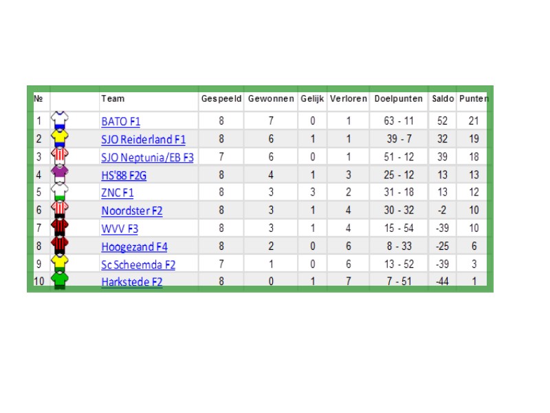 Ranglijst 2012 ZNC F1 najaar